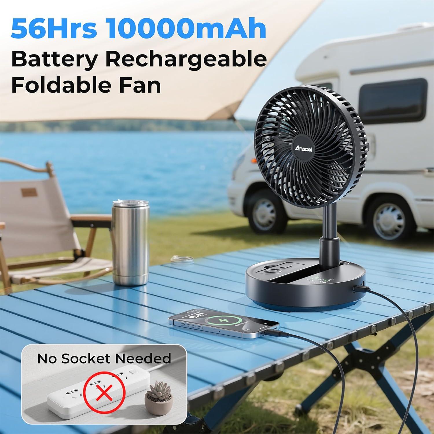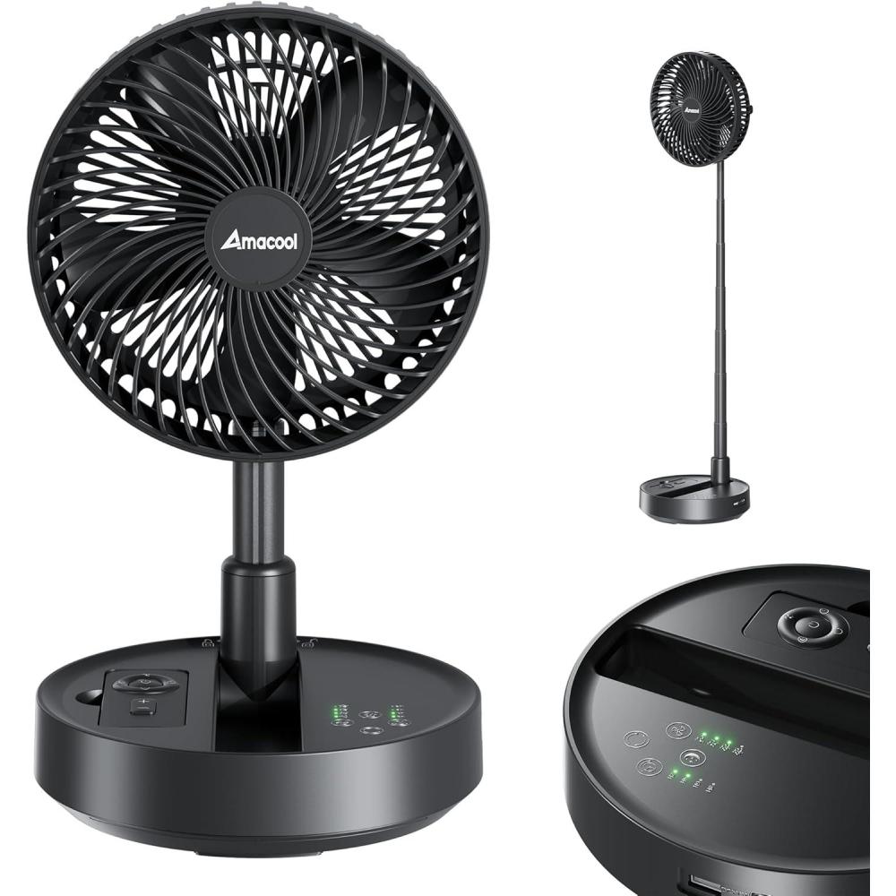 Foldable & Height Adjustable Design: Innovatively collapses into a compact 4.6 inch base for easy storage and portability; the fan height is fully adjustable from 17.72” to 35.85”, allowing flexible use as a desk fan, floor fan, or standing fan