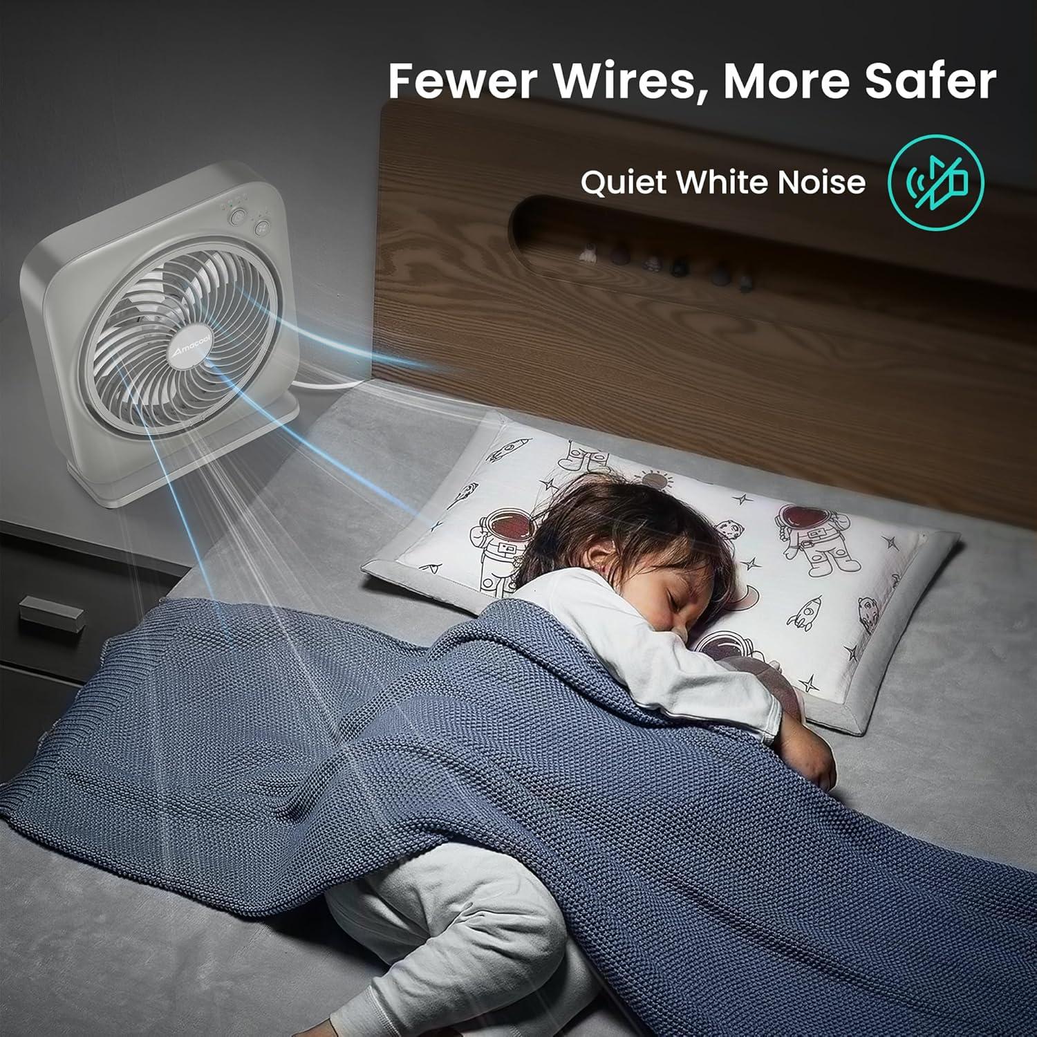 Be the first to review “AMACOOL Table Fan, 12 inch Box Fan with 3 Adjustable Speeds & 8HRS Timer, 270° Pivoting Quiet Air Circulator, Desktop Fan for Bedroom Bathroom Kitchen Office, AC Adapter Included-Black(Grey)”
